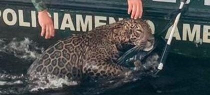 Onça-pintada resgatada no Rio Negro foi baleada na cabeça, confirma equipe veterinária