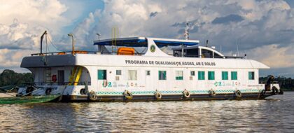 A bordo do navio da Marinha do Brasil, pesquisadores percorrem parte dos rios Negro, Solimões, Purus, Madeira e Amazonas para coletar amostras de água