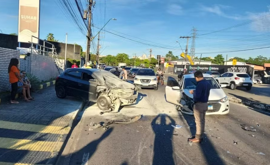 Na manhã desta segunda-feira (27/4), um acidente envolvendo dois carros foi registrado na Avenida Efigênio Sales, na zona Centro-Sul de Manaus, deixando pessoas feridas e provocando congestionamento na via.