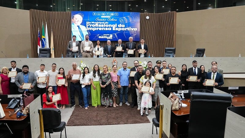 Dos gramados do futebol amazonense direto para o Plenário Adriano Jorge, na Câmara Municipal de Manaus. Foi assim que, em celebração ao Dia do Profissional da Imprensa Esportiva, jornalistas e comunicadores que atuam na cobertura esportiva foram homenageados em sessão solene.