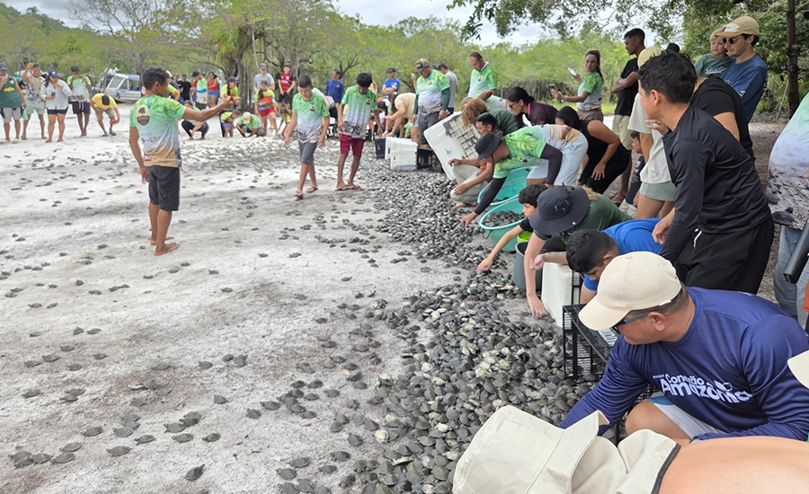 Mais de 56 mil filhotes de quelônios foram soltos em comunidades da Reserva de Desenvolvimento Sustentável (RDS) do Uatumã nos primeiros meses de 2026. A ação faz parte das atividades de conservação realizadas na Unidade de Conservação com apoio da Secretaria de Estado do Meio Ambiente (Sema) e participação direta de moradores ribeirinhos.