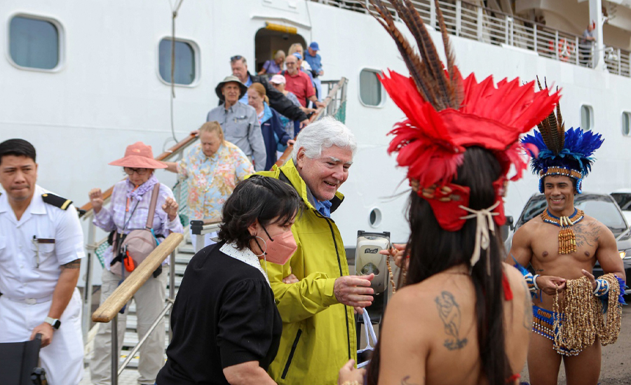 🚢 Antes de atracar em Manaus, o navio fará sua primeira parada na comunidade Boca da Valéria, em Parintins, ponto tradicional de visitação dos cruzeiros internacionais.