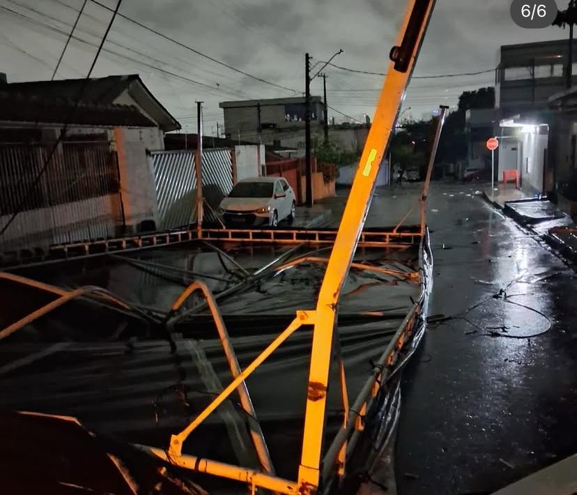 Chuva forte com ventos de 55 km/h provocou 32 ocorrências e deixou bairros sem energia; Defesa Civil emitiu alerta para risco de deslizamentos e alagamentos.