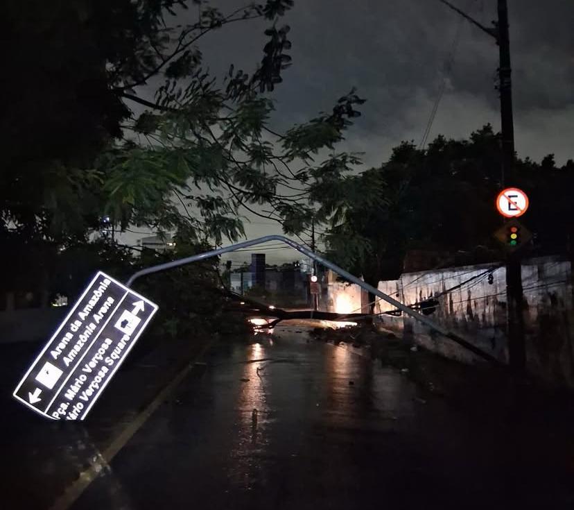 O temporal também provocou queda de energia elétrica em diversas áreas de Manaus. Moradores relataram apagão em bairros como Japiim, Distrito, Praça 14 de Janeiro, Aleixo, São Francisco, Parque 10 de Novembro e Cidade Nova.